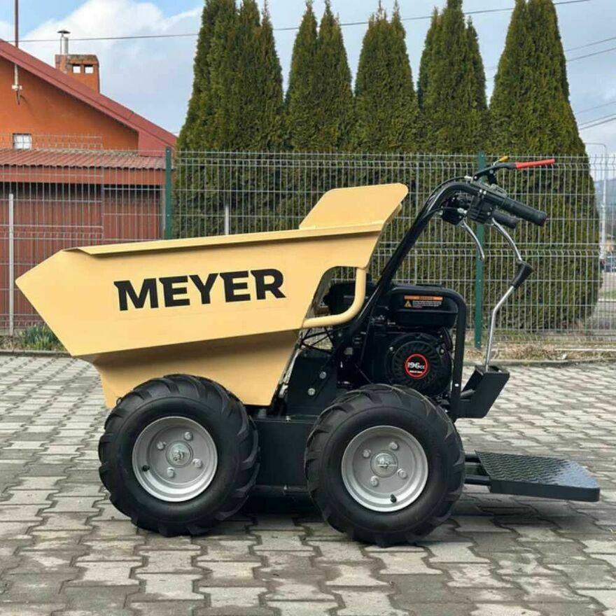 Wozidło MEYER T500L to idealne rozwiązanie dla firm budowlanych, ogrodniczych i brukarskich. Dzięki obrotowej skrzyni z hydraulicznym kiprem, rozładunek możliwy jest w wielu kierunkach – bez potrzeby manewrowania całą maszyną.
